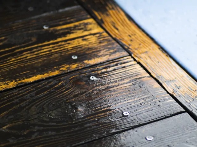 ソフトウッドのウッドデッキのお手入れでは、最低でも年に1回の再塗装が必要ですが、表面だけの塗装では不十分。