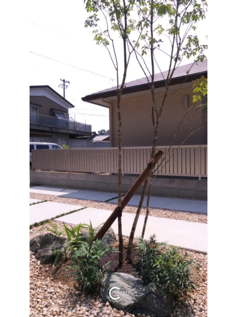駐車スペースの一角に山採りの木をシンボルツリーとして植えています。Pointポイント③