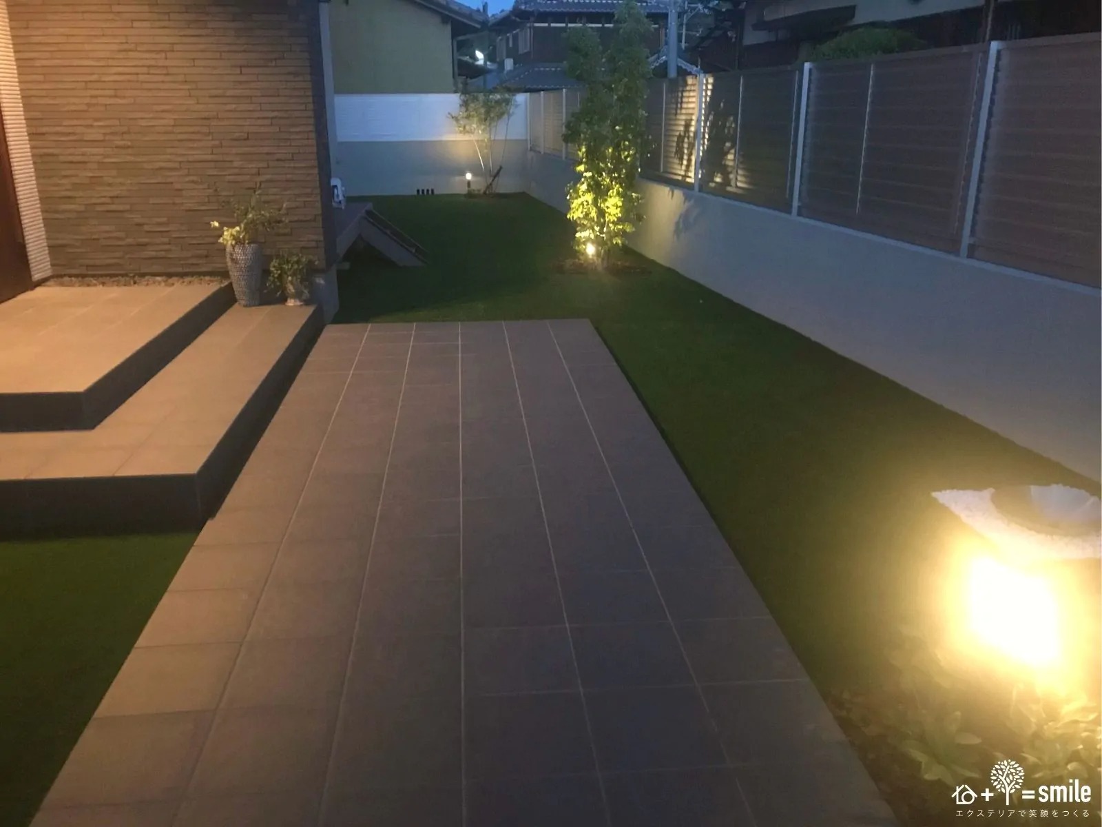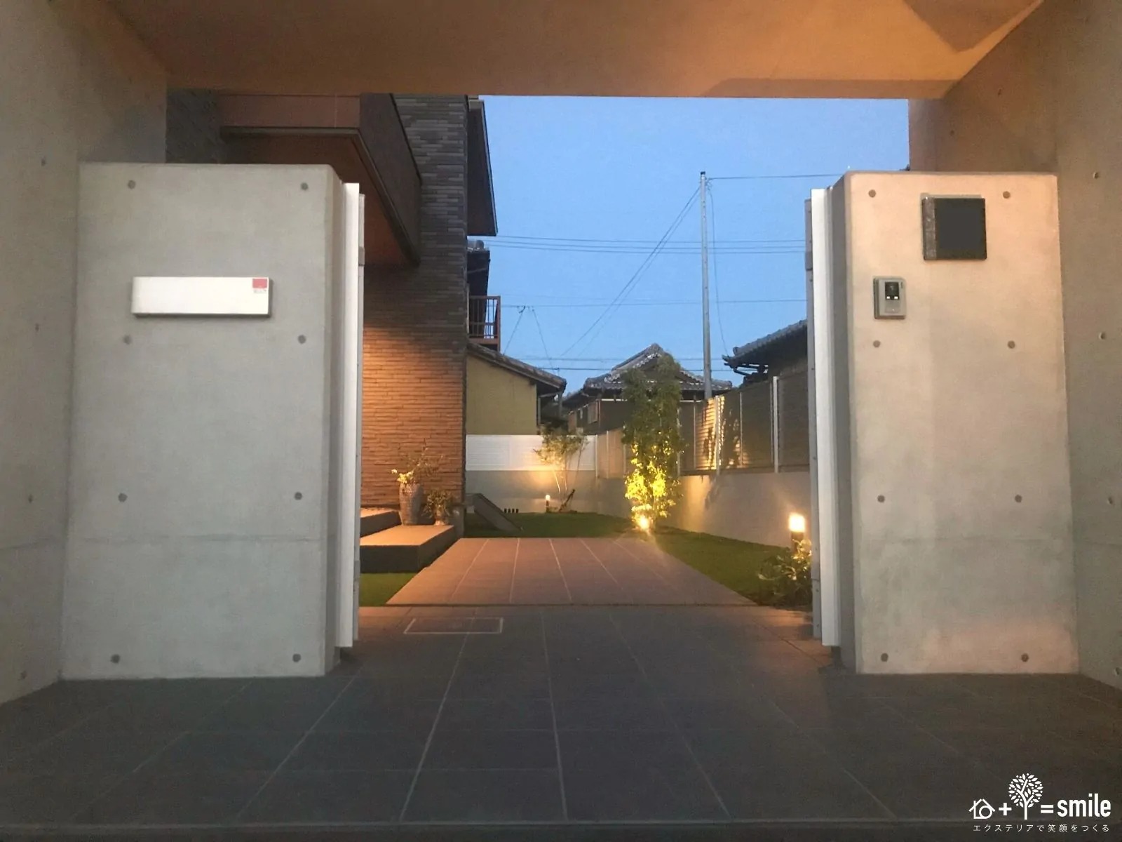 重厚感のあるアプローチと癒しのプライベート空間【新築外構】