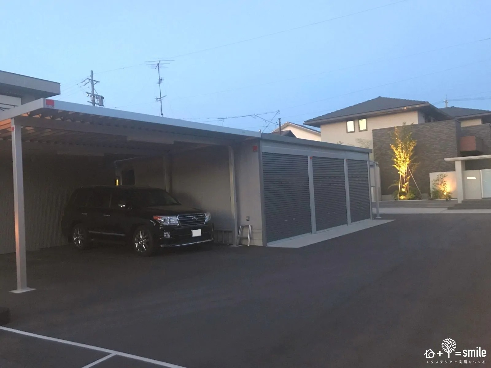 家の外に作った巨大な駐車スペース