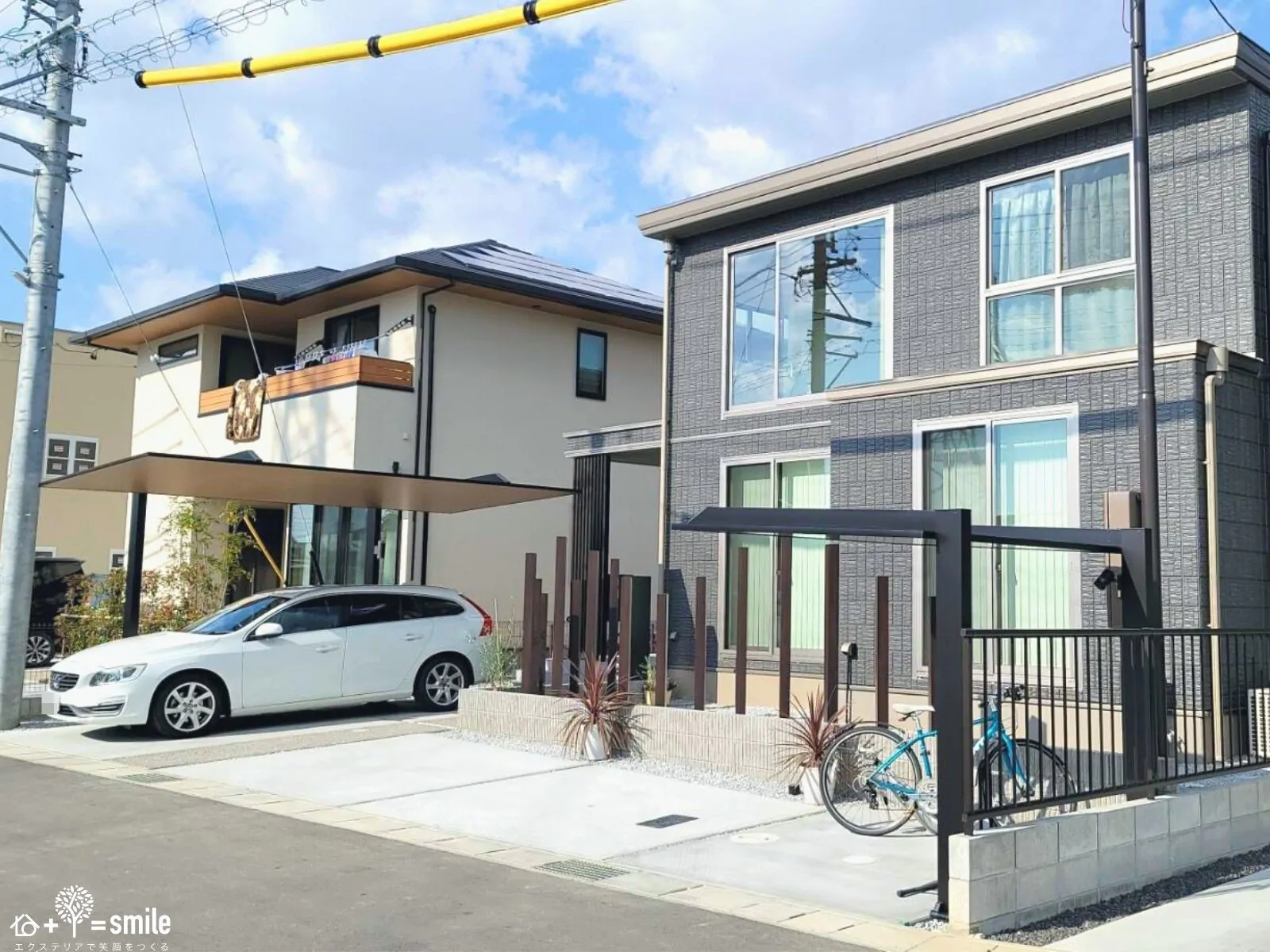 【駐車場×駐輪場】2種類のカーポートSCを取り入れ統一感あるお庭