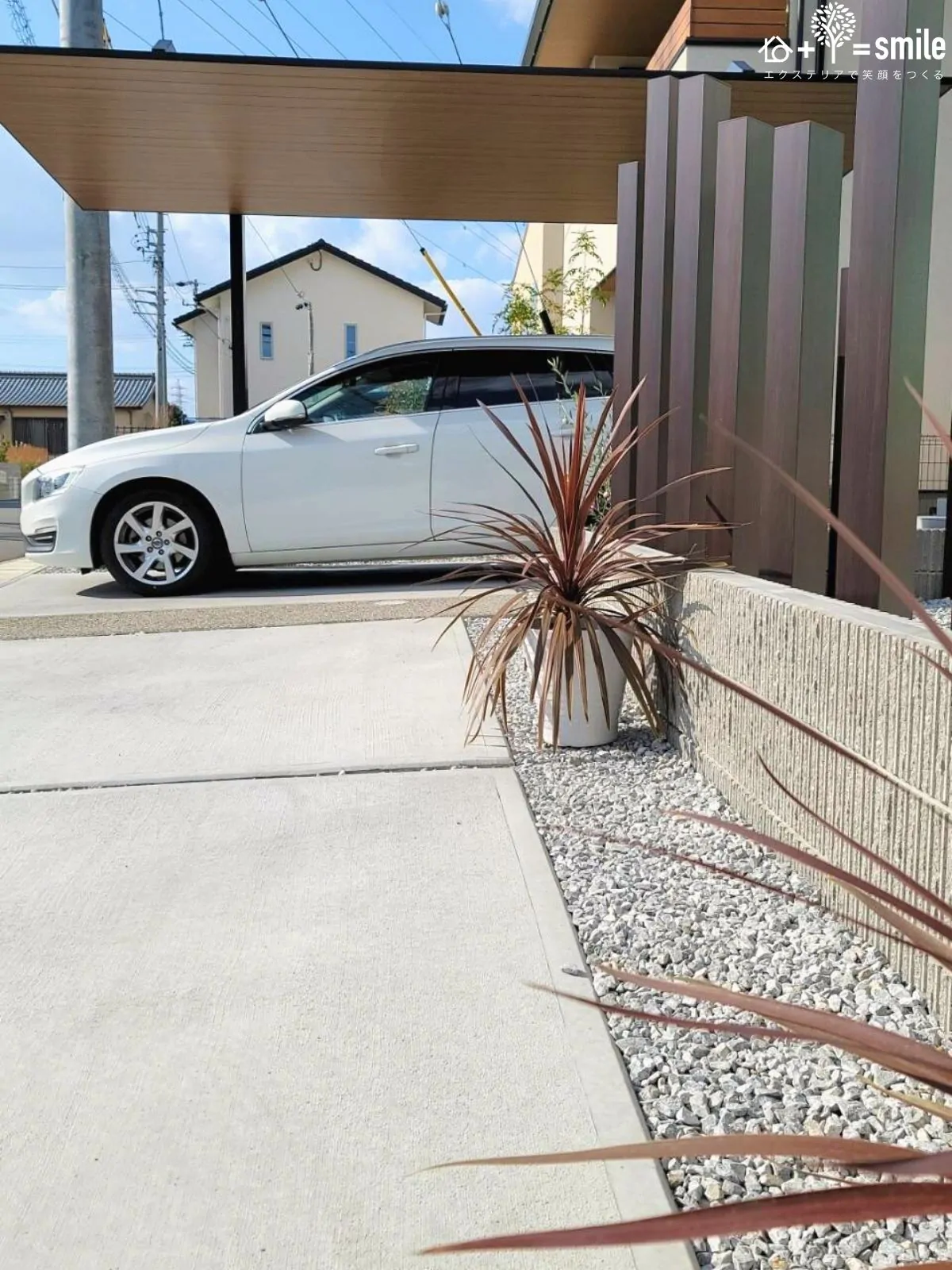 大人気のカーポートSCを活かした「大人モダン」エクステリア